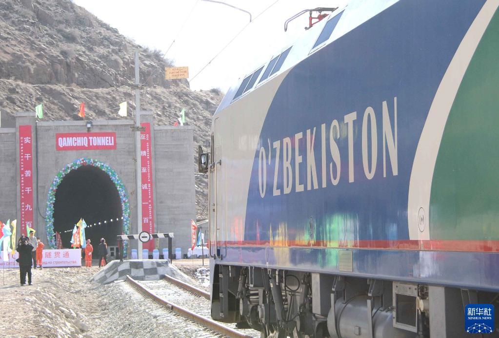 2016年2月27日,烏茲別克斯坦安格連-帕普鐵路卡姆奇克隧道全隧貫通。這是一列專列停在隧道進(jìn)口。新華社記者 沙達(dá)提 攝