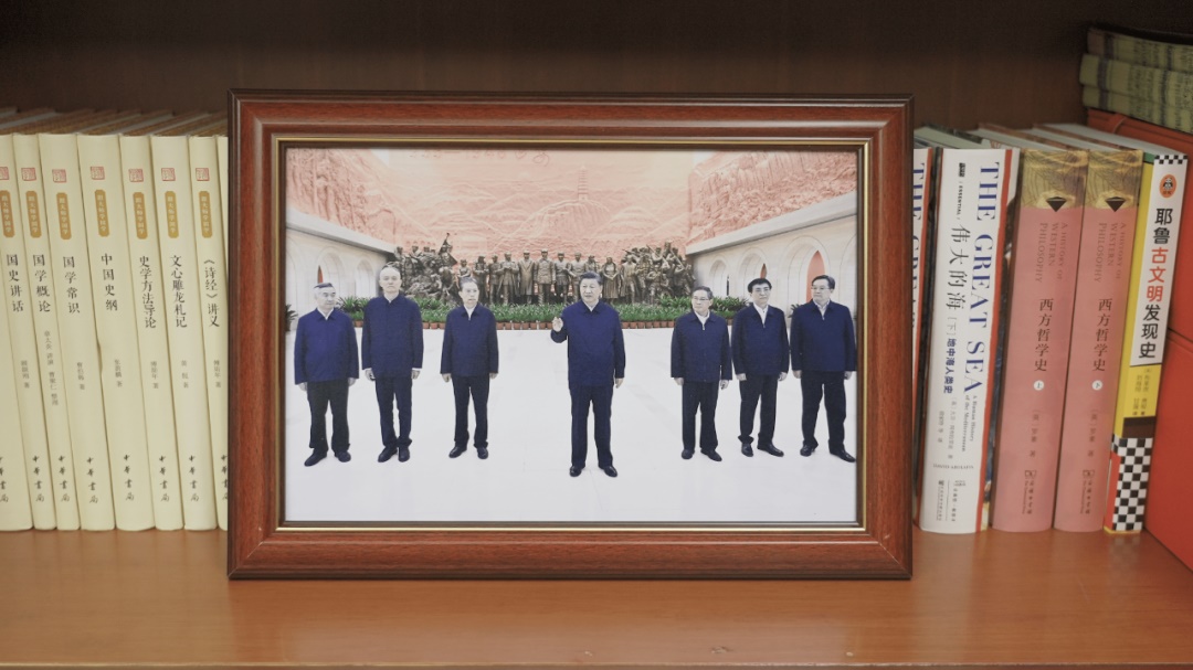 書架上,還增加了兩張習(xí)近平總書記年輕時的照片。