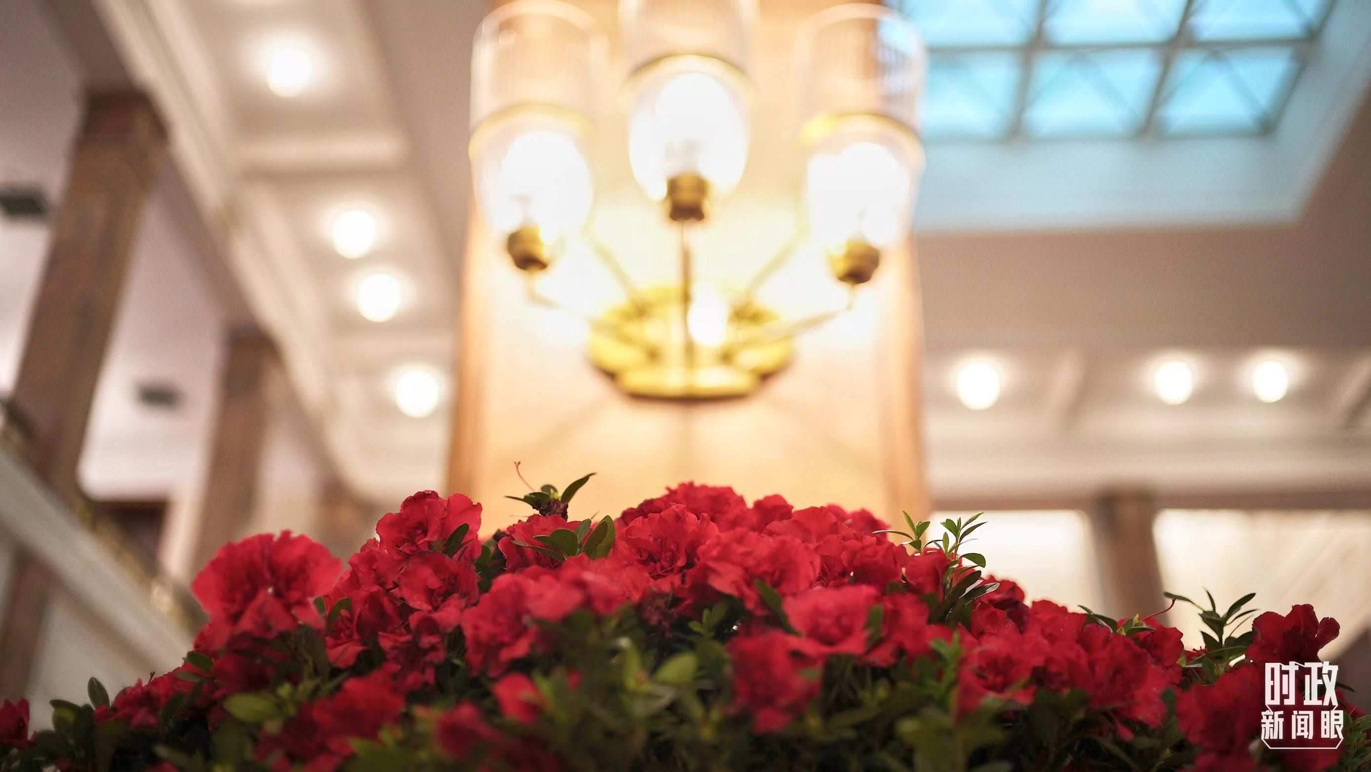 △人民大會堂北大廳外,杜鵑花正在綻放。(總臺央視記者彭漢明拍攝)