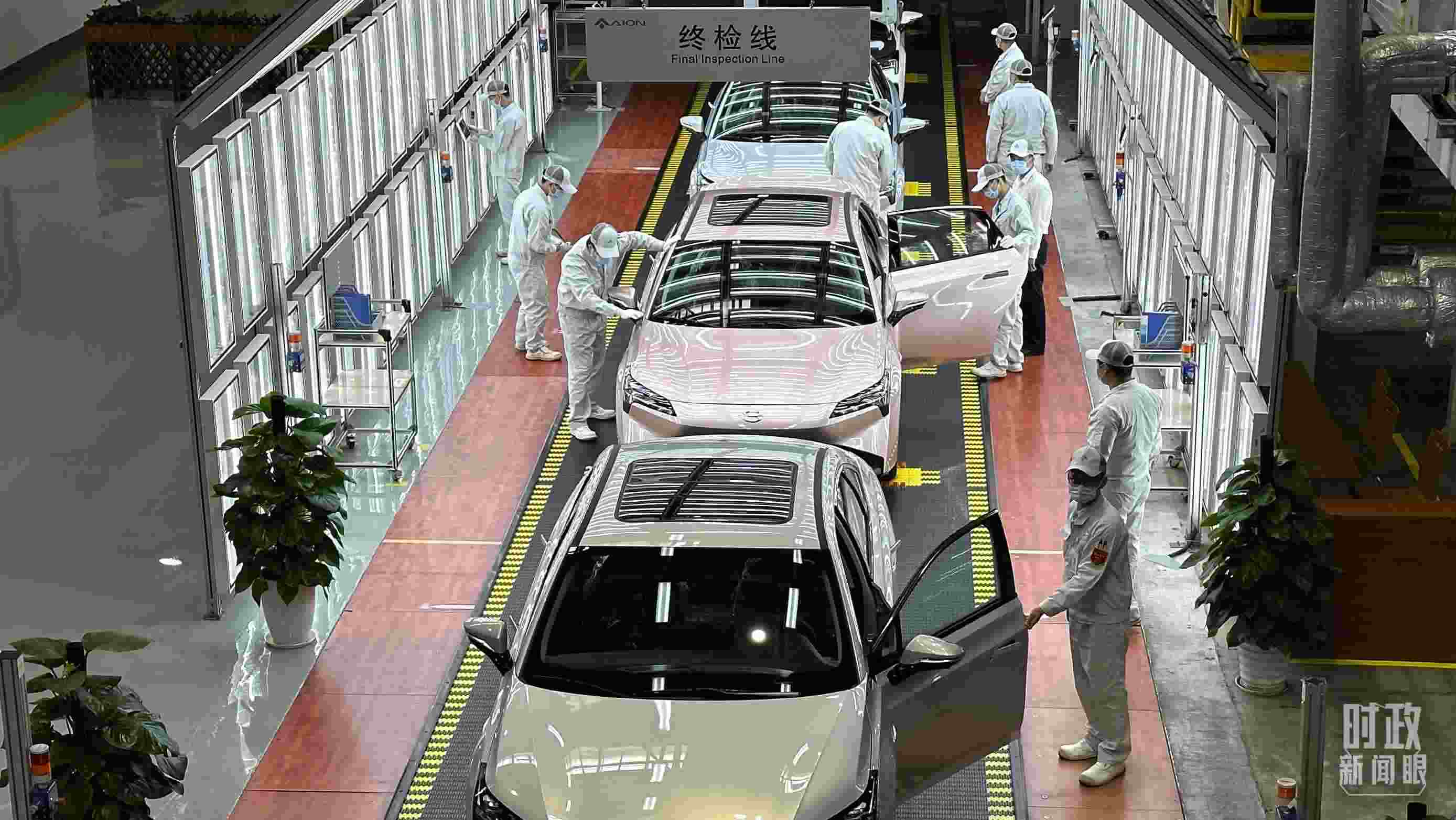 △廣汽埃安總裝車間終檢線作業(yè)現(xiàn)場。(總臺央視記者趙化拍攝)