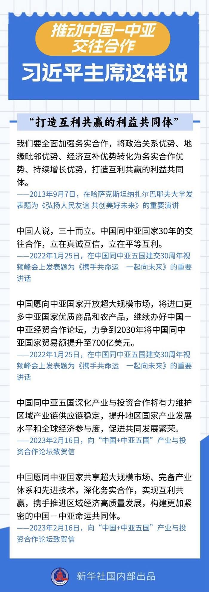 過(guò)去十年間,習(xí)近平主席同中亞五國(guó)領(lǐng)導(dǎo)人保持密切互動(dòng),引領(lǐng)中國(guó)同中亞國(guó)家政治互信不斷深化,務(wù)實(shí)合作提質(zhì)升級(jí),國(guó)際協(xié)作走深走實(shí)。關(guān)于中國(guó)-中亞交往合作,習(xí)近平主席作出過(guò)哪些重要論述?一起來(lái)看——
