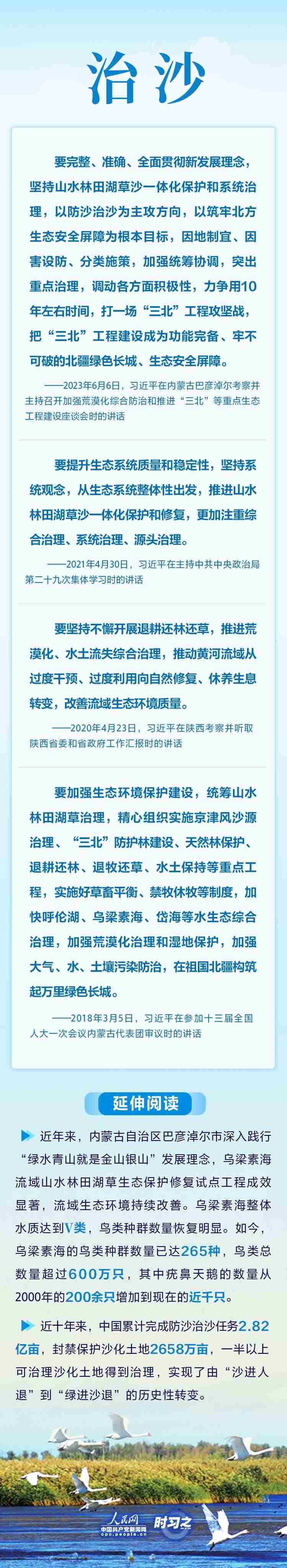 長(zhǎng)期以來,在習(xí)近平生態(tài)文明思想的指引下,我國堅(jiān)持走綠色發(fā)展之路,堅(jiān)持科學(xué)防沙治沙,創(chuàng)造了“綠色奇跡”。