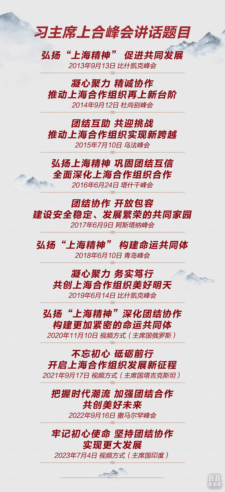 每次出席上合峰會(huì),習(xí)近平主席都發(fā)表重要講話(huà),為上合組織發(fā)展壯大擘畫(huà)藍(lán)圖。