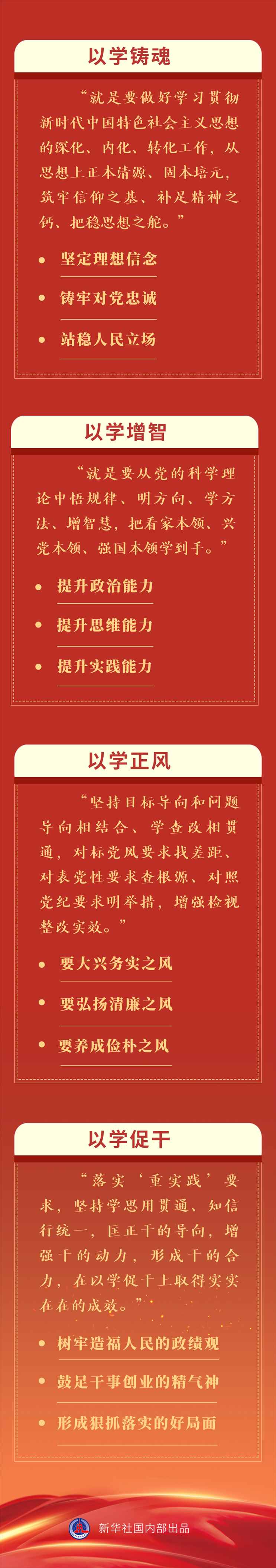 以學(xué)鑄魂推動(dòng)精神洗禮,以學(xué)增智強(qiáng)化能力提升,以學(xué)正風(fēng)促進(jìn)作風(fēng)轉(zhuǎn)變,以學(xué)促干推動(dòng)事業(yè)發(fā)展。