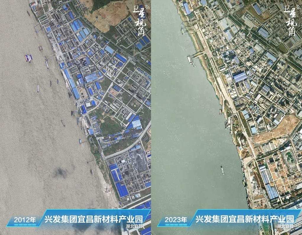 ↑2023年與2012年相比,興發(fā)集團(tuán)宜昌新材料產(chǎn)業(yè)園內(nèi),原來臨江建設(shè)的生產(chǎn)設(shè)施已經(jīng)搬遷和拆除。