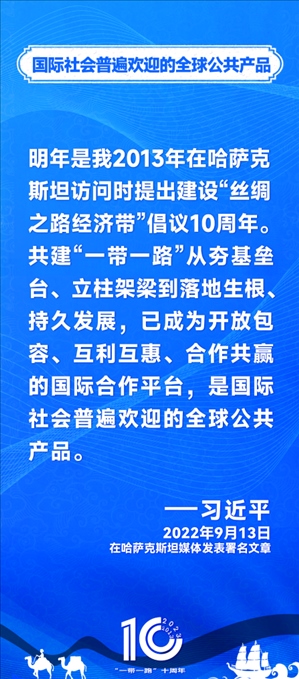 10年前,習(xí)近平主席提出共建“絲綢之路經(jīng)濟(jì)帶”和“21世紀(jì)海上絲綢之路”,即共建“一帶一路”倡議。過去10年來,習(xí)近平主席在多個場合發(fā)表講話和署名文章,為世界描繪了共建“一帶一路”互聯(lián)互通、合作共贏的宏偉藍(lán)圖。