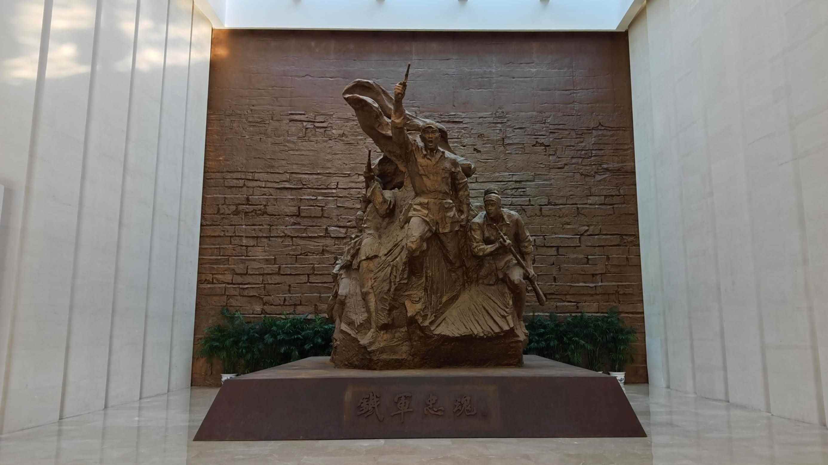△新四軍紀(jì)念館里的雕塑“鐵軍忠魂”。(總臺央視記者郭鴻拍攝)