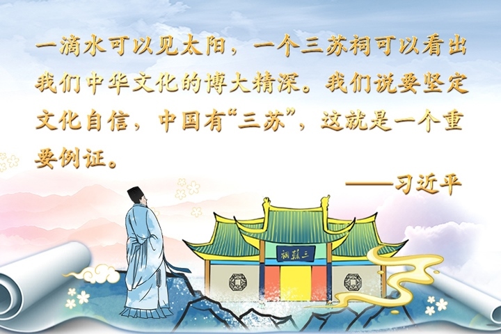 2022年6月8日,習(xí)近平總書記來(lái)到四川省眉山市三蘇祠,了解三蘇生平、主要文學(xué)成就和家訓(xùn)家風(fēng),以及三蘇祠歷史沿革、東坡文化研究傳承等。