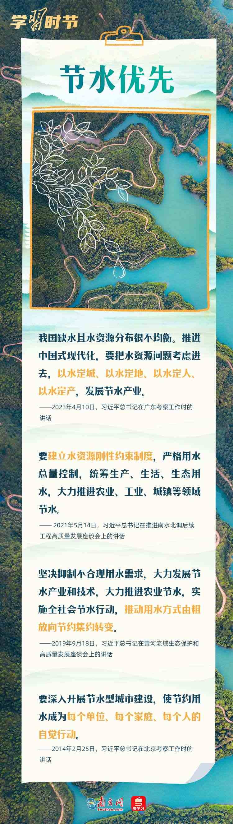 善治國者必善治水。黨的十八大以來,習近平總書記站在實現(xiàn)中華民族永續(xù)發(fā)展的戰(zhàn)略高度,親自擘畫、親自部署、親自推動治水事業(yè),就治水發(fā)表了一系列重要講話,為新時代治水興水提供了科學指南和根本遵循。3月22日是“世界水日”,讓我們一起重溫總書記關于治水的重要論述,走好水安全有效保障、水資源高效利用、水生態(tài)明顯改善、水環(huán)境有效治理的高質(zhì)量發(fā)展之路。