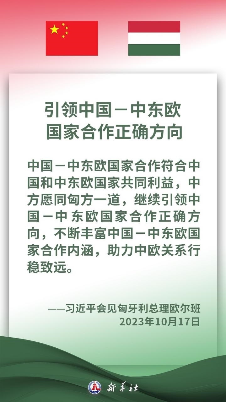 匈牙利是中東歐地區(qū)重要國家,是中方推進(jìn)共建“一帶一路”及中國-中東歐國家合作的重要合作伙伴。近年來,在兩國領(lǐng)導(dǎo)人的戰(zhàn)略引領(lǐng)下,中匈關(guān)系保持高水平發(fā)展,兩國高層交往密切,政治互信持續(xù)深化,各領(lǐng)域合作扎實(shí)推進(jìn)、成果豐碩,為兩國人民帶來切實(shí)利益。習(xí)近平主席說,中方愿同匈方繼續(xù)做彼此信賴、合作共贏的好朋友、好伙伴。