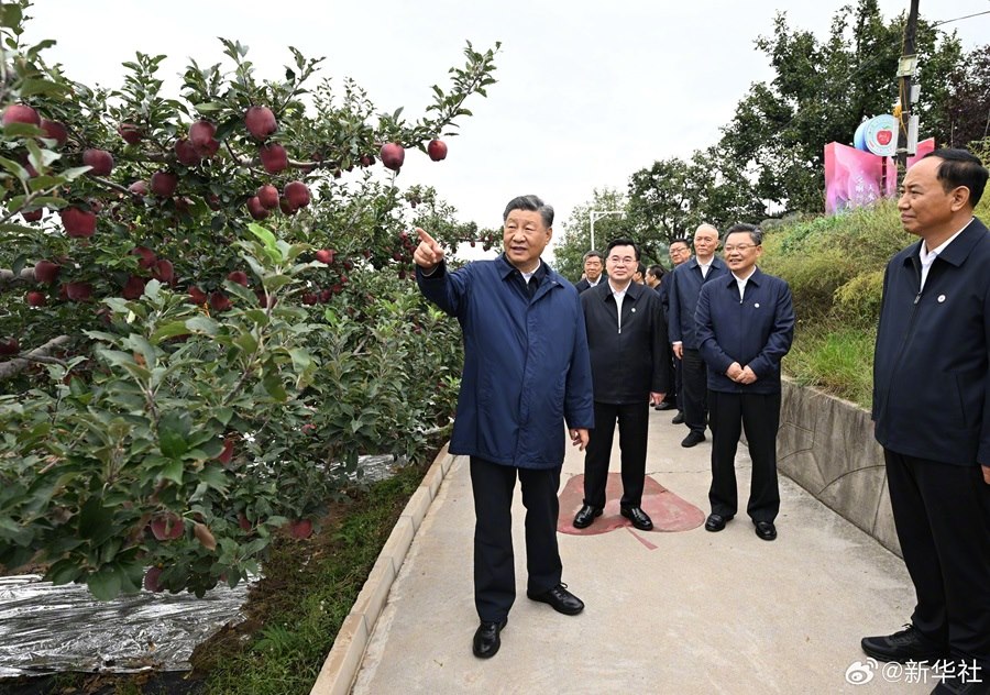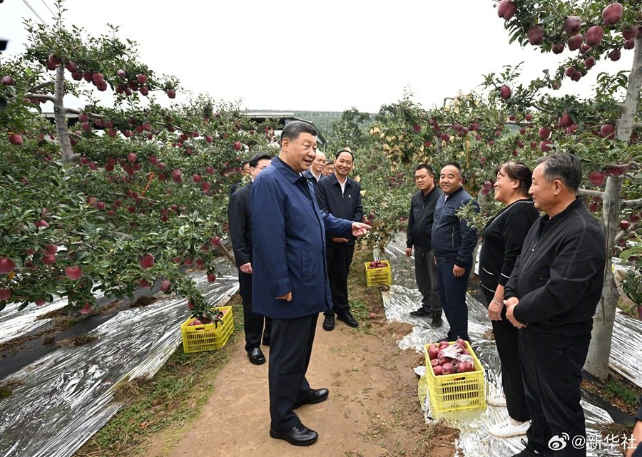 11日上午,習(xí)近平總書記來到甘肅天水市麥積區(qū)南山花牛蘋果基地考察,走進(jìn)果林向現(xiàn)場(chǎng)的果農(nóng)、農(nóng)技人員等詳細(xì)詢問花牛蘋果品質(zhì)特色、種植技術(shù)、市場(chǎng)銷路等,并同鄉(xiāng)親們親切交流。習(xí)近平說,鄉(xiāng)村振興要靠產(chǎn)業(yè),各地要各展其長(zhǎng),走適合自己的振興道路。習(xí)近平勉勵(lì)鄉(xiāng)親們?cè)俳釉賲?,把蘋果產(chǎn)業(yè)做得更大更強(qiáng),過上更加幸福的生活。(文字記者:張曉松、朱基釵;攝影記者:鞠鵬、謝環(huán)馳)