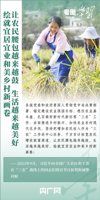民族要復(fù)興,鄉(xiāng)村必振興。黨的十八大以來,每到各地考察調(diào)研,習近平總書記總會去農(nóng)村看一看,走進田間地頭,和農(nóng)民拉拉家常??倳洀娬{(diào),“建設(shè)宜居宜業(yè)和美鄉(xiāng)村是農(nóng)業(yè)強國的應(yīng)有之義”,“要讓農(nóng)民腰包越來越鼓、生活越來越美好”。