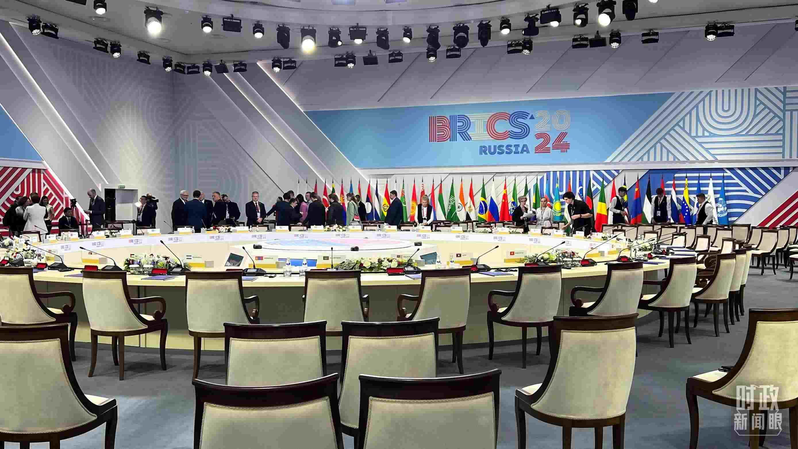 △今年“金磚+”領導人對話會在喀山會展中心舉行,這是對話會開始前的現(xiàn)場。(總臺央視記者程鋮拍攝)