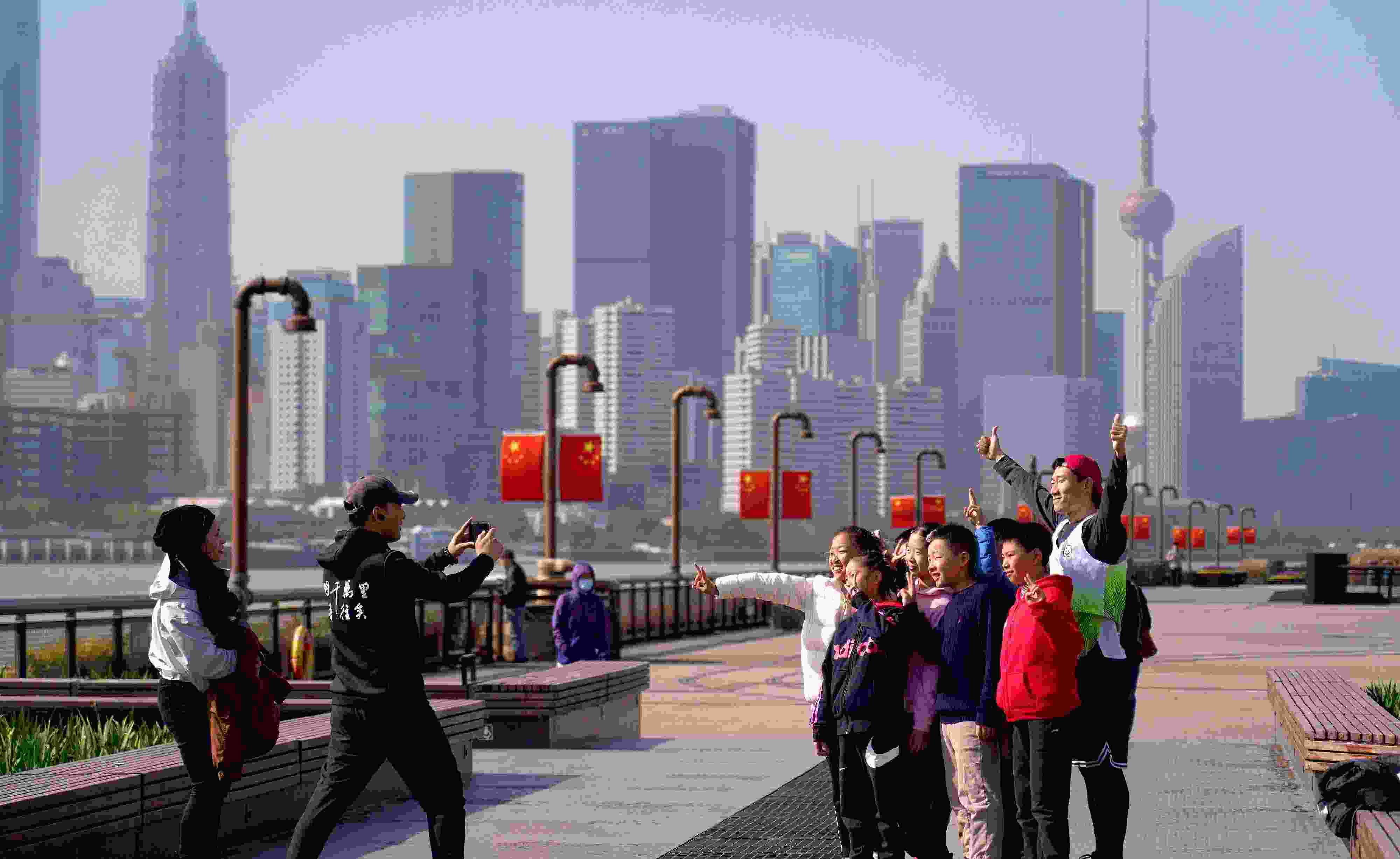 △ 2023年11月17日,市民游客在上海楊浦濱江岸線觀光拍照。