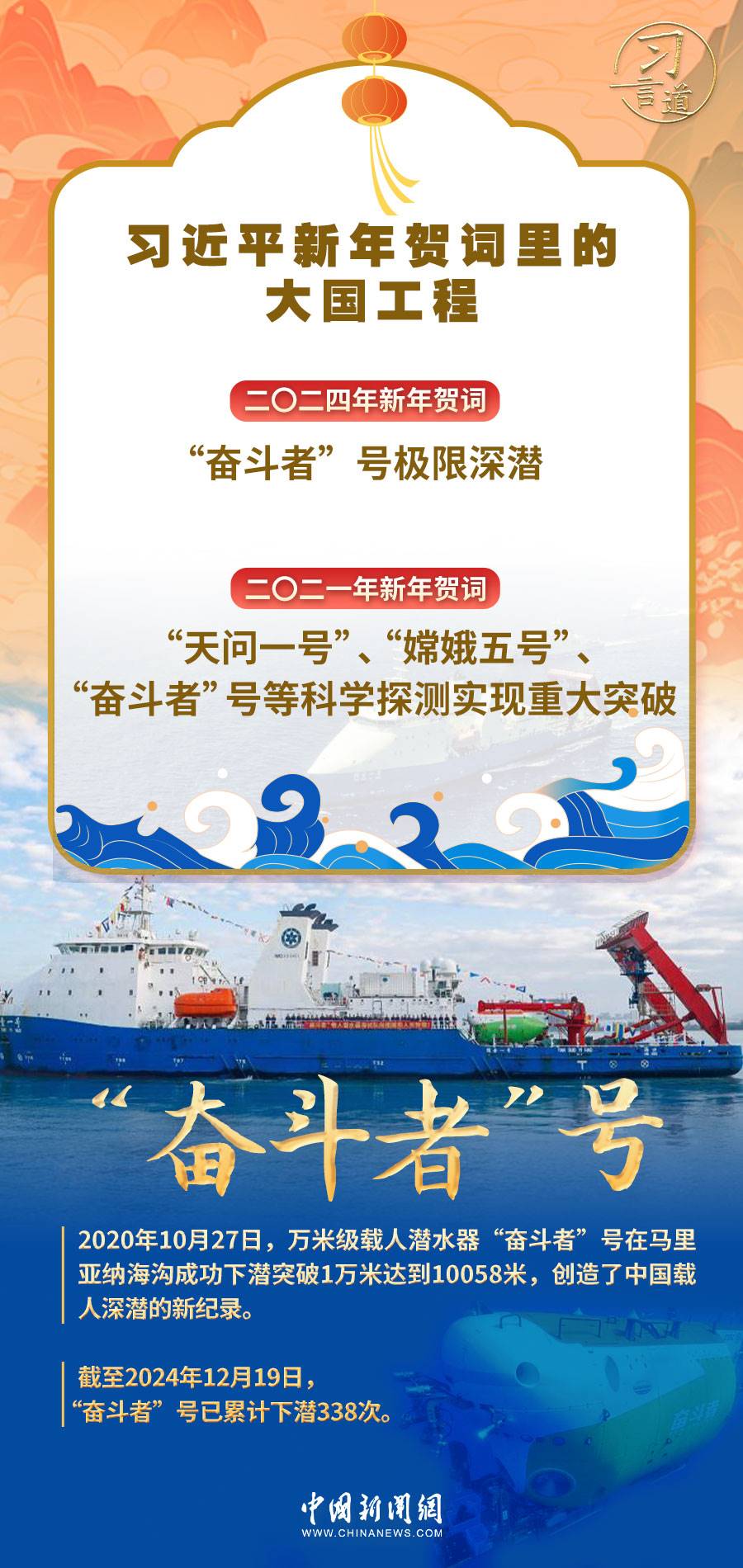習(xí)近平主席在二〇二五年新年賀詞中,為中國人逐夢星辰大海的豪情壯志喝彩。新年之際,讓我們一起重溫習(xí)近平主席在新年賀詞中點(diǎn)贊的大國工程。