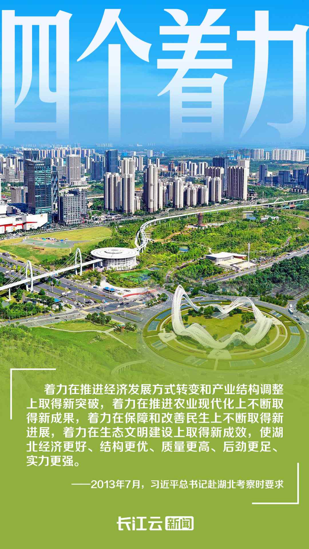 2013年7月,習(xí)近平總書記首次考察湖北時(shí)提出“四個著力”,要求“努力把湖北建設(shè)成為中部地區(qū)崛起重要戰(zhàn)略支點(diǎn)”“爭取在轉(zhuǎn)變經(jīng)濟(jì)發(fā)展方式上走在全國前列”。
