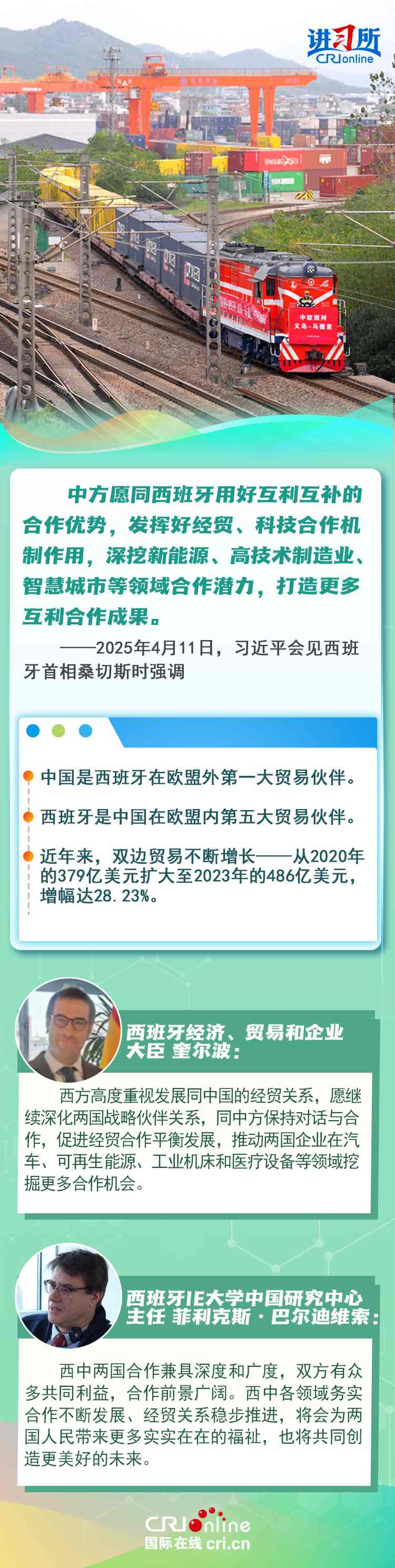 今年是中西全面戰(zhàn)略伙伴關(guān)系建立20周年,也是中歐建交50周年。多年來(lái),中西兩國(guó)領(lǐng)導(dǎo)人保持密切互動(dòng),秉持互尊互信、互利共贏精神,兩國(guó)在深化貿(mào)易、投資、科技創(chuàng)新、綠色能源等領(lǐng)域取得豐富合作成果,雙邊關(guān)系走在中國(guó)同歐洲國(guó)家關(guān)系前列。在西班牙人士眼中,良好的對(duì)華關(guān)系對(duì)西班牙、歐洲和世界具有重要意義,將會(huì)為兩國(guó)人民帶來(lái)更多實(shí)實(shí)在在的福祉,也將共同創(chuàng)造更美好的未來(lái)。