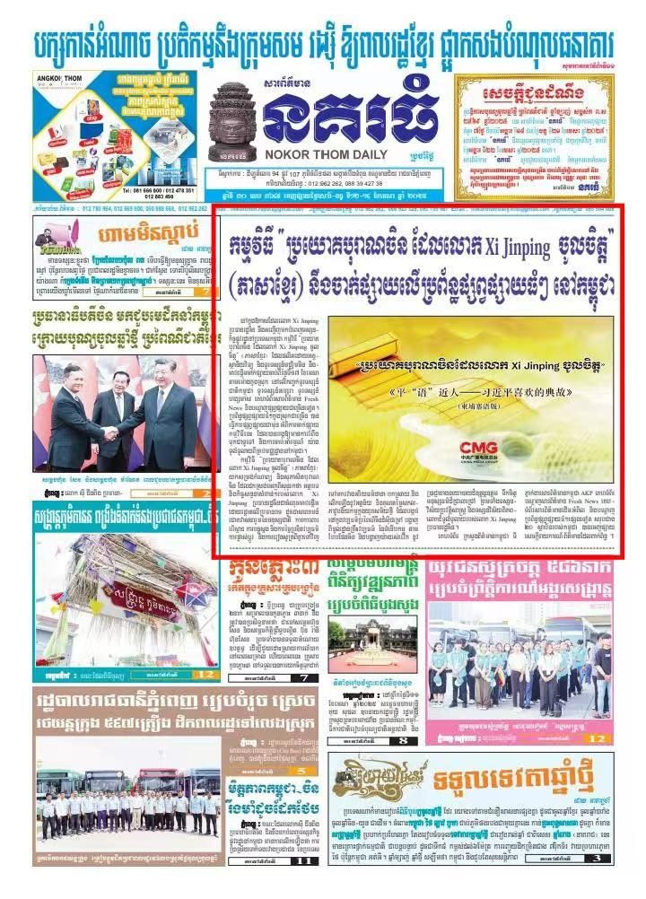 4月12日至17日,《柬華日?qǐng)?bào)》《大都市報(bào)》等當(dāng)?shù)貓?bào)紙刊發(fā)節(jié)目播出預(yù)告消息。文章指出,《平“語”近人——習(xí)近平喜歡的典故》(柬埔寨語版)是一把讀懂中國(guó)高質(zhì)量發(fā)展內(nèi)在邏輯的“金鑰匙”,相信柬埔寨受眾可以通過這些中國(guó)古籍和經(jīng)典名句加深理解中華優(yōu)秀傳統(tǒng)文化所蘊(yùn)含的新時(shí)代內(nèi)涵和全球化價(jià)值,了解習(xí)近平主席治國(guó)理政思想和新時(shí)代中國(guó)的發(fā)展戰(zhàn)略。