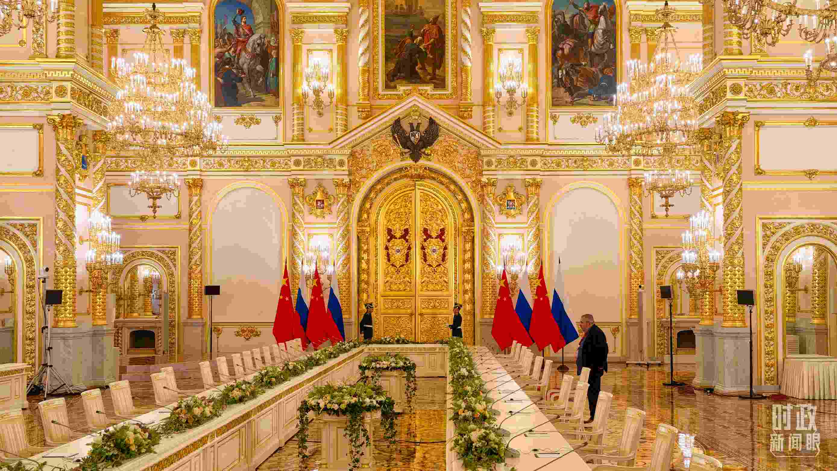 △習(xí)主席和普京總統(tǒng)舉行大范圍會談的會場。(總臺央視記者趙東辰拍攝)