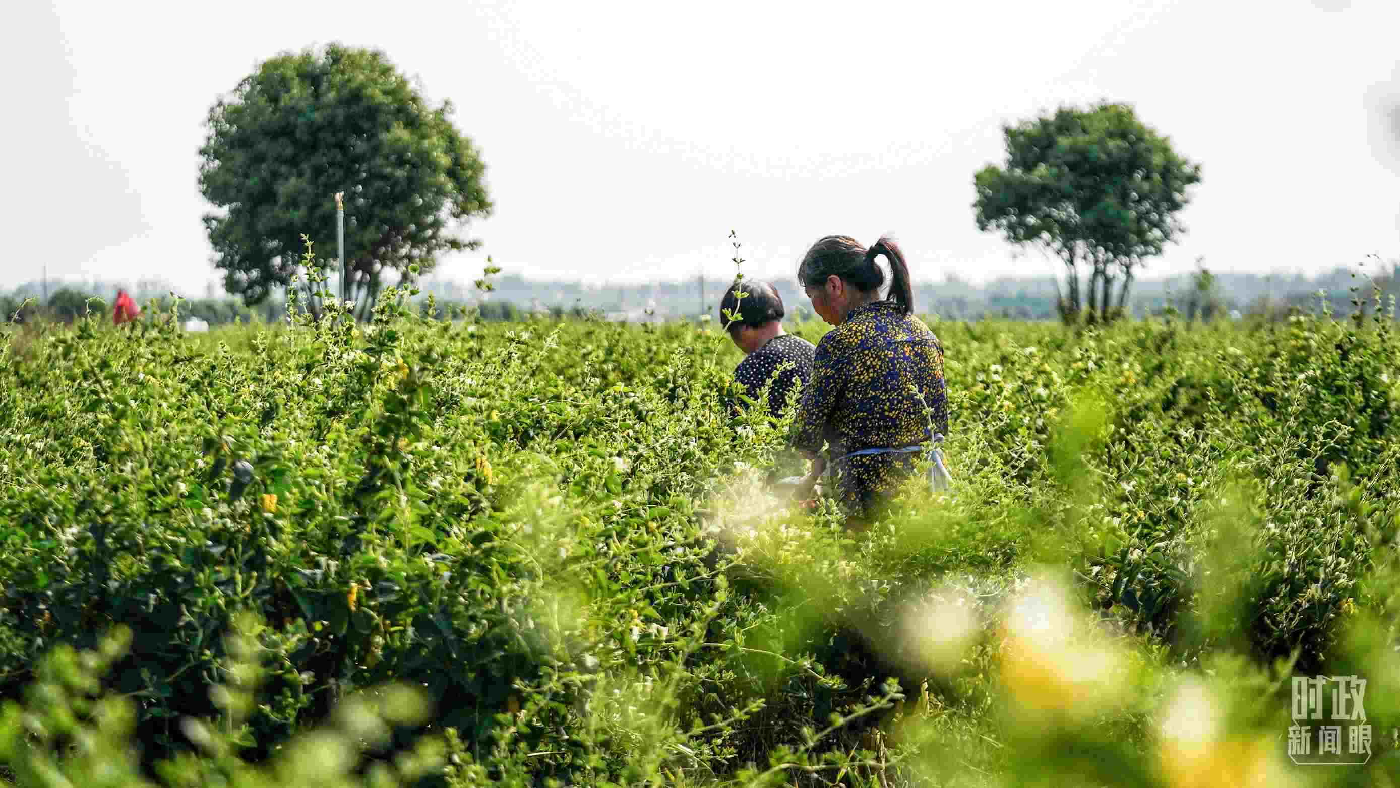 △五月,河南農(nóng)民采摘金銀花。(總臺(tái)國(guó)廣記者李晉拍攝)