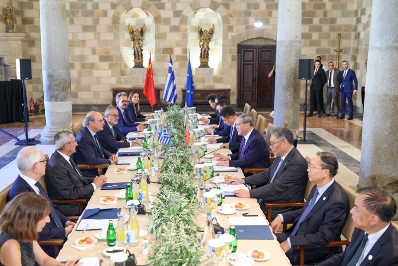 李強指出,中方愿同希方拉緊合作紐帶,更好發(fā)揮互補優(yōu)勢,高質量推進比雷埃夫斯港總規(guī)劃落地,推動兩國貿易更加優(yōu)化平衡發(fā)展,加強在清潔能源、輸變電、人工智能等領域合作,培育更多經(jīng)濟新增長點。中方支持和鼓勵更多有實力的中國企業(yè)根據(jù)市場原則,積極推進對希臘投資。雙方要加強文明互鑒,密切旅游等人文交流,增進兩國人民友好。中歐之間有著廣泛的共同利益。當前全球單邊主義、保護主義愈演愈烈,中歐應共同發(fā)出倡導多邊主義和自由貿易的積極聲音,攜手維護經(jīng)濟全球化和國際經(jīng)貿秩序。希望希臘繼續(xù)為推進中歐關系發(fā)展發(fā)揮建設性作用。