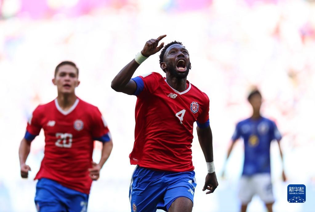 11月27日,哥斯達黎加隊球員富勒(前)破門得分后慶祝。新華社記者 李明 攝