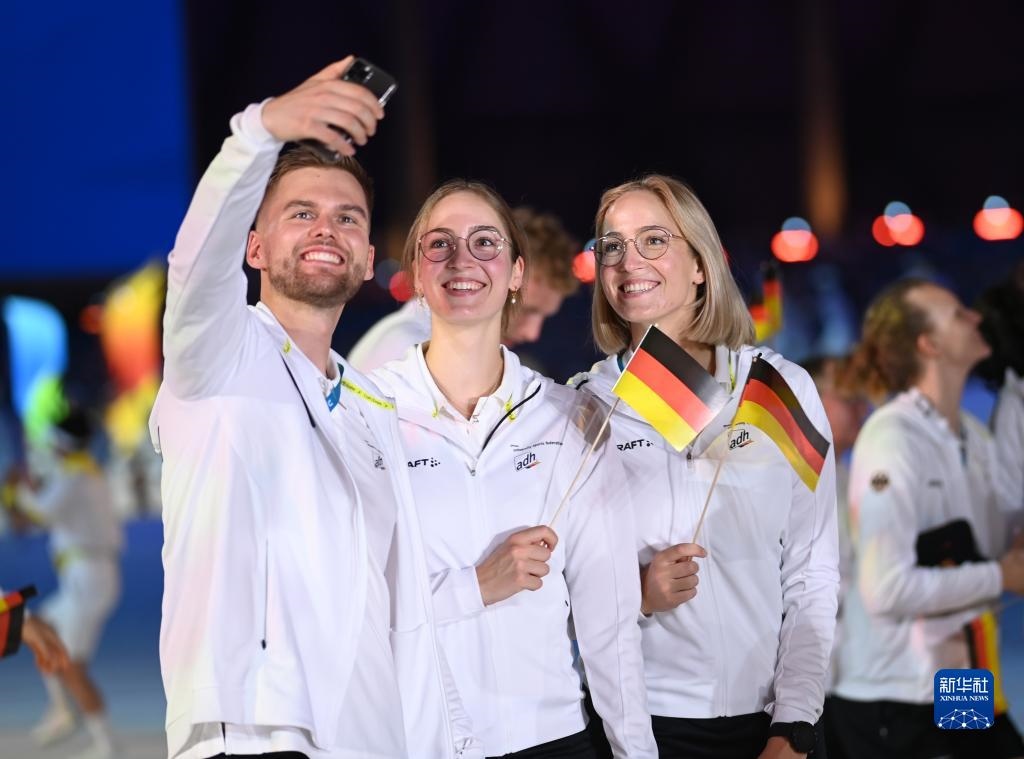 7月28日,德國大學(xué)生體育代表團在開幕式上入場。