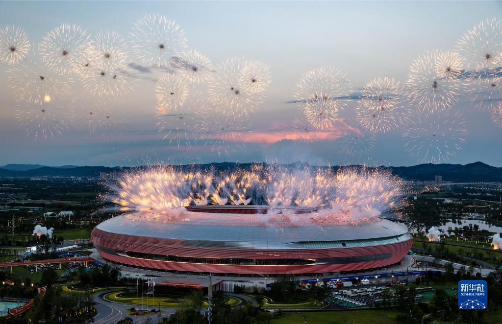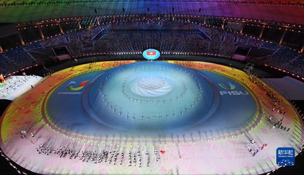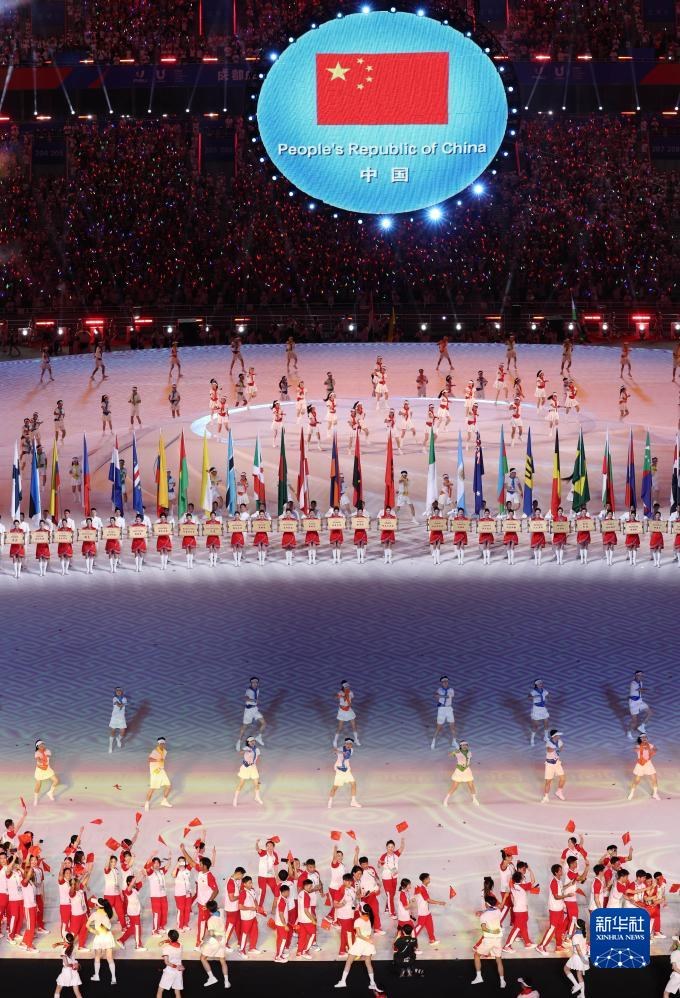當(dāng)晚,第31屆世界大學(xué)生夏季運動會開幕式在成都東安湖體育公園主體育場舉行。