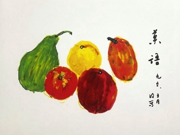 農(nóng)歷進(jìn)入了立夏,桃李遍天下的李政道,對著面前果盤里紅黃綠紫的水果,畫了一張名為《果語》的寫生畫寄給鄭志鵬。在那個純真的時代,在這張小小的賀卡上,沒有祝福文字,只有簡潔的藝術(shù)表達(dá)和深切的內(nèi)心感受。這色彩豐富的《果語》,不知包含著多少祝福和希望??!
