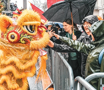 新年伊始,英國(guó)首都倫敦下起了雨。盡管天公不作美,人們迎接新年的熱情不減,第39屆倫敦新年巡游如期進(jìn)行,這也是英國(guó)當(dāng)?shù)匦履陸c典的重要組成部分。在來(lái)自世界各地的花車表演中,倫敦華埠商會(huì)方隊(duì)作為唯一的華人方隊(duì),舞龍舞獅、花車表演風(fēng)采十足。