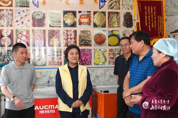 我區(qū)民族特色奶制品具有很大的發(fā)展?jié)摿?。在新巴爾虎左旗娜仁薩其爾巴爾虎奶食品加工基地,布小林考察產品種類、工藝流程、安全檢測、包裝銷售等方面的情況。得知基地被認定為奶制品技藝培訓教室和扶貧車間、主要安置建檔立卡貧困戶就業(yè)時,她對此給予肯定,鼓勵基地進一步發(fā)揮引領帶動作用,積極探索特色化、標準化、品牌化發(fā)展路子,幫助更多貧困群眾增收致富。