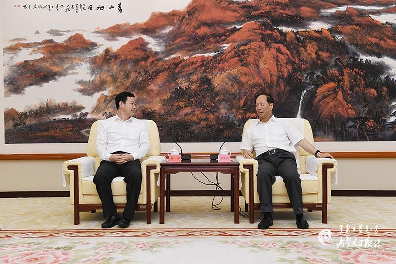 8月27日下午,自治區(qū)黨委書(shū)記、人大常委會(huì)主任石泰峰在呼和浩特會(huì)見(jiàn)中國(guó)移動(dòng)通信集團(tuán)有限公司董事長(zhǎng)楊杰。內(nèi)蒙古日?qǐng)?bào)社融媒體記者 袁永紅 攝