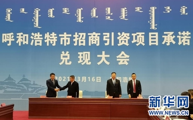 呼和浩特市招商引資項(xiàng)目承諾兌現(xiàn)大會現(xiàn)場。新華網(wǎng)發(fā)