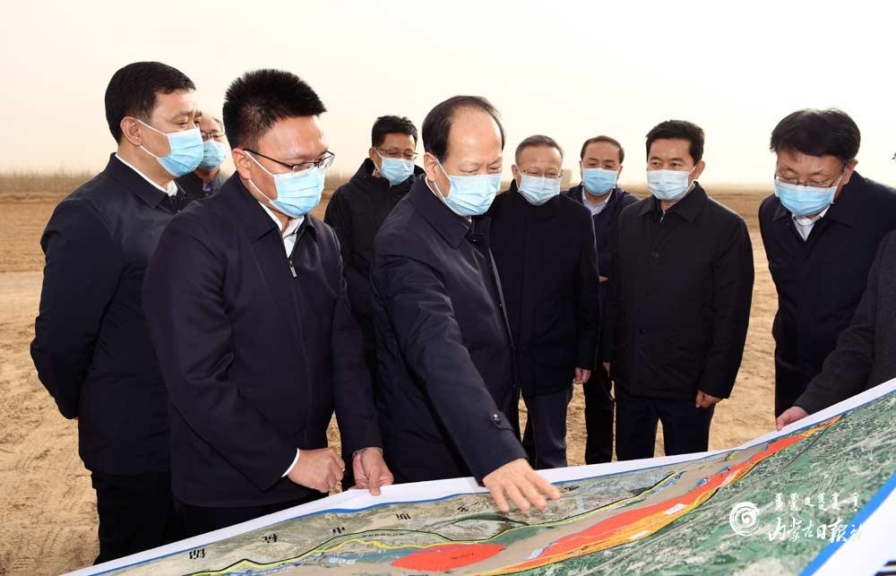 3月16日,自治區(qū)黨委書記、人大常委會(huì)主任石泰峰來到巴彥淖爾市臨河區(qū)雙河鎮(zhèn)富河村,察看了解黃河河道整治情況。內(nèi)蒙古日?qǐng)?bào)社融媒體記者袁永紅攝