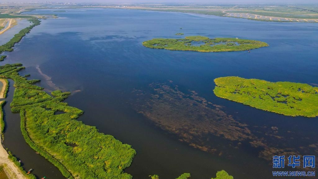 經過多年治理,烏梁素海重現“塞外明珠”美景(無人機照片)。新華社記者彭源 攝