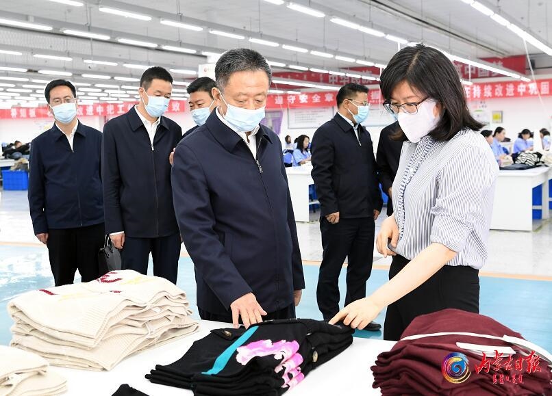 5月31日,自治區(qū)黨委書記孫紹騁來到鄂爾多斯高新技術(shù)產(chǎn)業(yè)開發(fā)區(qū)輕紡產(chǎn)業(yè)園,走進鄂爾多斯集團羊絨研發(fā)中心、生產(chǎn)車間和產(chǎn)品展廳,深入了解企業(yè)技術(shù)人才引進、產(chǎn)品開發(fā)及生產(chǎn)經(jīng)營等情況。本報記者袁永紅攝
