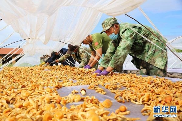 內(nèi)蒙古森工集團(tuán)阿里河森工公司齊奇嶺林場種植戶將采摘后的滑子菇進(jìn)行晾曬。新華網(wǎng) 石毅 攝