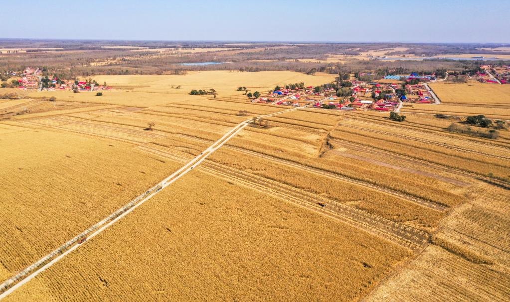 10月13日,這是通遼市奈曼旗義隆永鎮(zhèn)方家營子村待收的玉米。(無人機照片 新華社記者連振 攝)