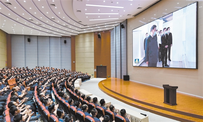 6月8日晚,中環(huán)產(chǎn)業(yè)園組織300多名員工早早來(lái)到二期報(bào)告廳守在了電視機(jī)前。