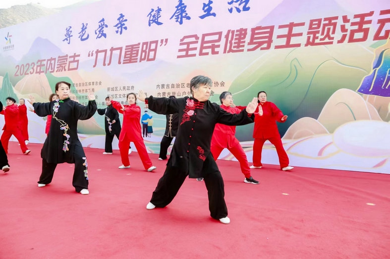當(dāng)日,由內(nèi)蒙古自治區(qū)體育總會主辦、呼和浩特市體育局承辦的2023年內(nèi)蒙古“九九重陽”全民健身主題活動在國家登山健身步道舉行?,F(xiàn)場設(shè)置了3公里登高健身活動和全民健身展演等活動。