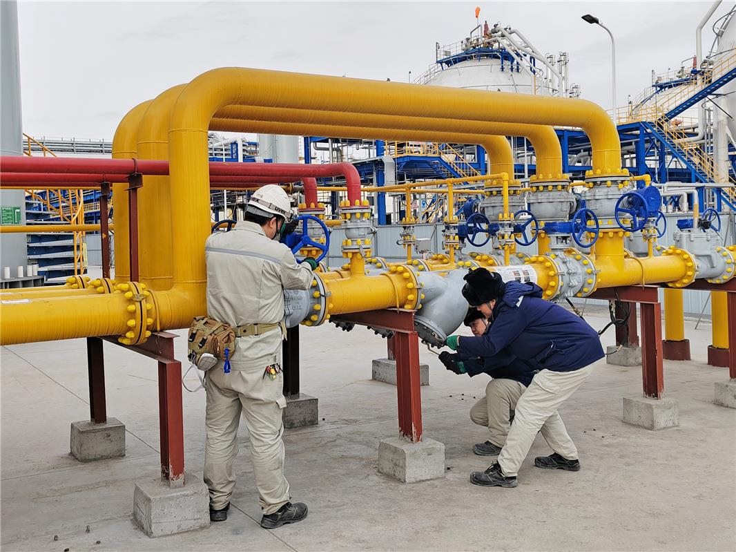 工作人員正在現(xiàn)場(chǎng)操作天然氣管道過(guò)濾器濾網(wǎng)。