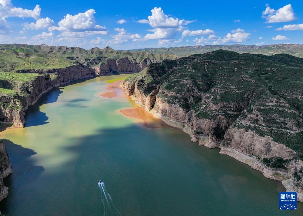 ??這是8月12日拍攝的老牛灣北側(cè)的一處黃河峽谷(無人機照片)。