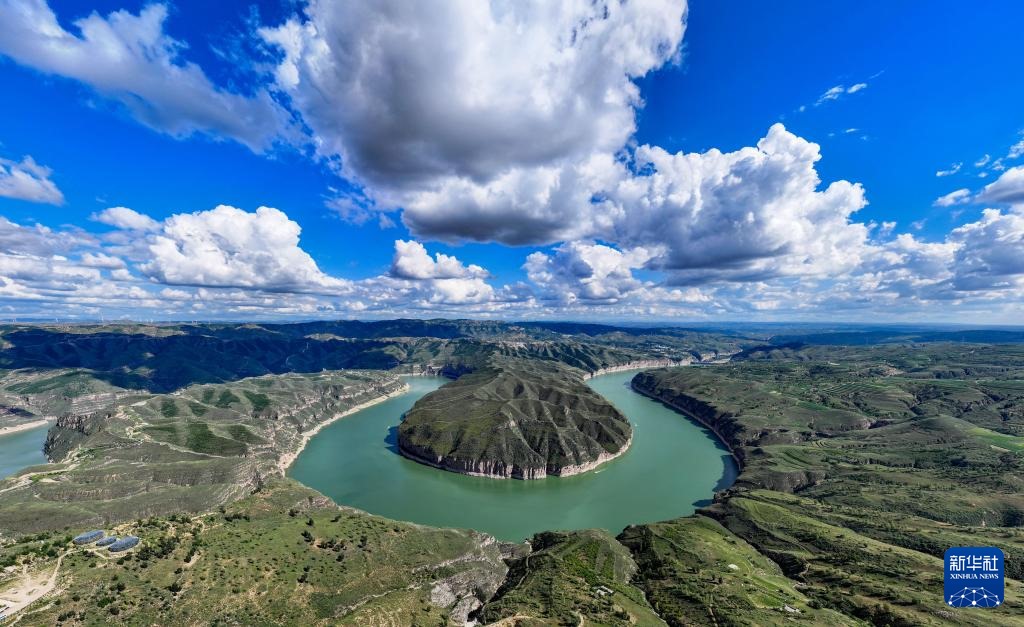 ??這是8月12日拍攝的黃河老牛灣風光(無人機照片)。