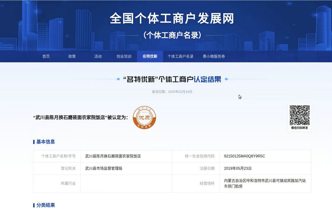 去年,呼和浩特市市場監(jiān)管局等16個(gè)市級(jí)部門聯(lián)合制定實(shí)施《呼和浩特市個(gè)體工商戶分型分類實(shí)施方案(試行)》,開展“名特優(yōu)新”個(gè)體工商戶申報(bào)和推薦工作。通過線上線下雙渠道,利用個(gè)體工商戶服務(wù)月活動(dòng),向廣大個(gè)體工商戶普及申報(bào)政策和流程,鼓勵(lì)符合條件的個(gè)體工商戶參與申報(bào)。通過材料審核、走訪核實(shí)、征求意見、評(píng)審認(rèn)定、信息公示等程序,經(jīng)區(qū)縣、市、自治區(qū)逐級(jí)復(fù)核上報(bào),呼和浩特市首批認(rèn)定全國“名特優(yōu)新”的27戶個(gè)體工商戶已完成入庫(其中“知名”15戶、“特色”10戶、“優(yōu)質(zhì)”2戶),被認(rèn)定的個(gè)體工商戶可享受由國家、自治區(qū)、市出臺(tái)的相關(guān)扶持培育政策。
