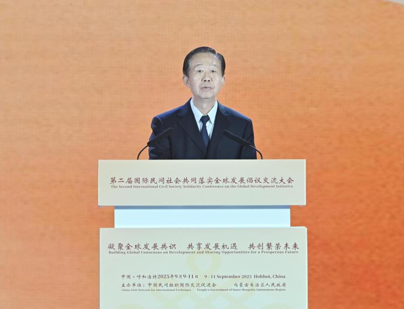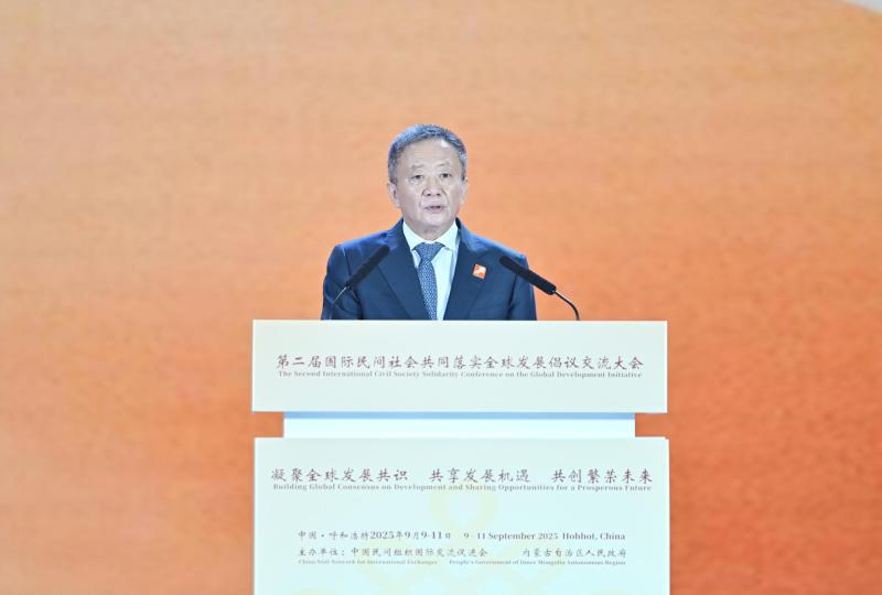 9月10日,內(nèi)蒙古自治區(qū)黨委書記、人大常委會主任孫紹騁在第二屆國際民間社會共同落實(shí)全球發(fā)展倡議交流大會開幕式上致辭。草原云·內(nèi)蒙古新聞網(wǎng)記者 馬建兵 攝