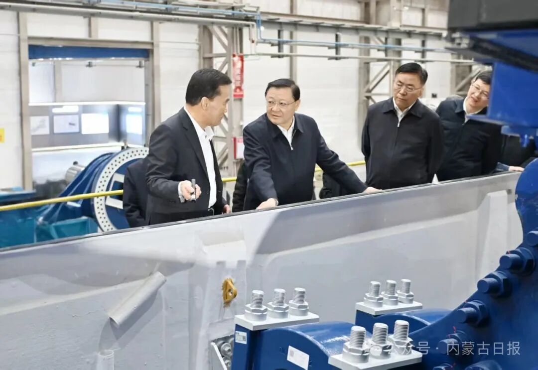 10月27日,自治區(qū)黨委書記王偉中來到明陽新能源智能制造產(chǎn)業(yè)園調(diào)研,邊看邊與企業(yè)負(fù)責(zé)人交流,了解產(chǎn)業(yè)發(fā)展、項目建設(shè)、生產(chǎn)運行和市場行情等情況。草原云·內(nèi)蒙古新聞網(wǎng)記者