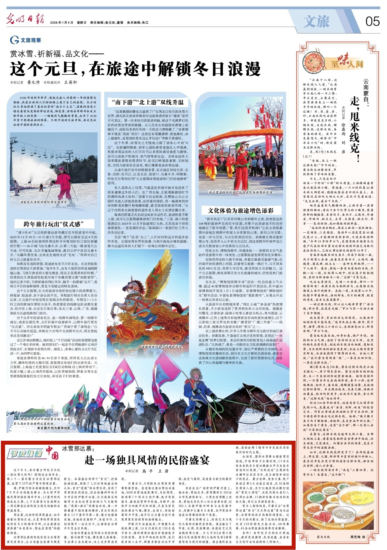 2026年1月4日,《光明日?qǐng)?bào)》第5版刊發(fā)題為《冰雪那達(dá)慕:赴一場(chǎng)獨(dú)具風(fēng)情的民俗盛宴》的文章,報(bào)道了第二十一屆內(nèi)蒙古自治區(qū)冰雪那達(dá)慕,在零下25℃的嚴(yán)寒中燃情舉辦,上萬(wàn)名游客與各族群眾一同沉醉在這場(chǎng)傳統(tǒng)與現(xiàn)代相融的冰雪盛宴里。