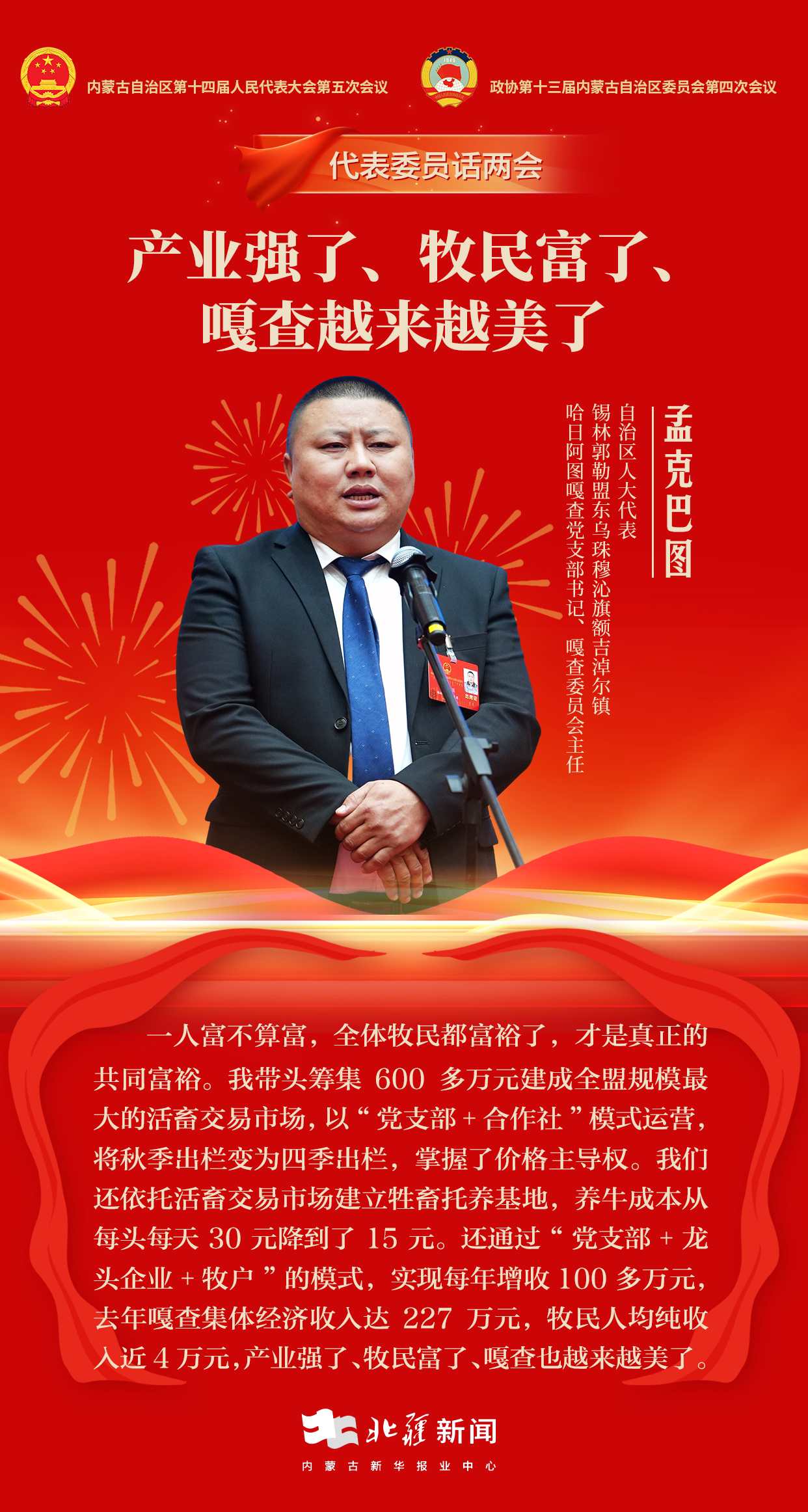孟克巴圖說,一人富不算富,全體牧民都富裕了,才是真正的共同富裕。