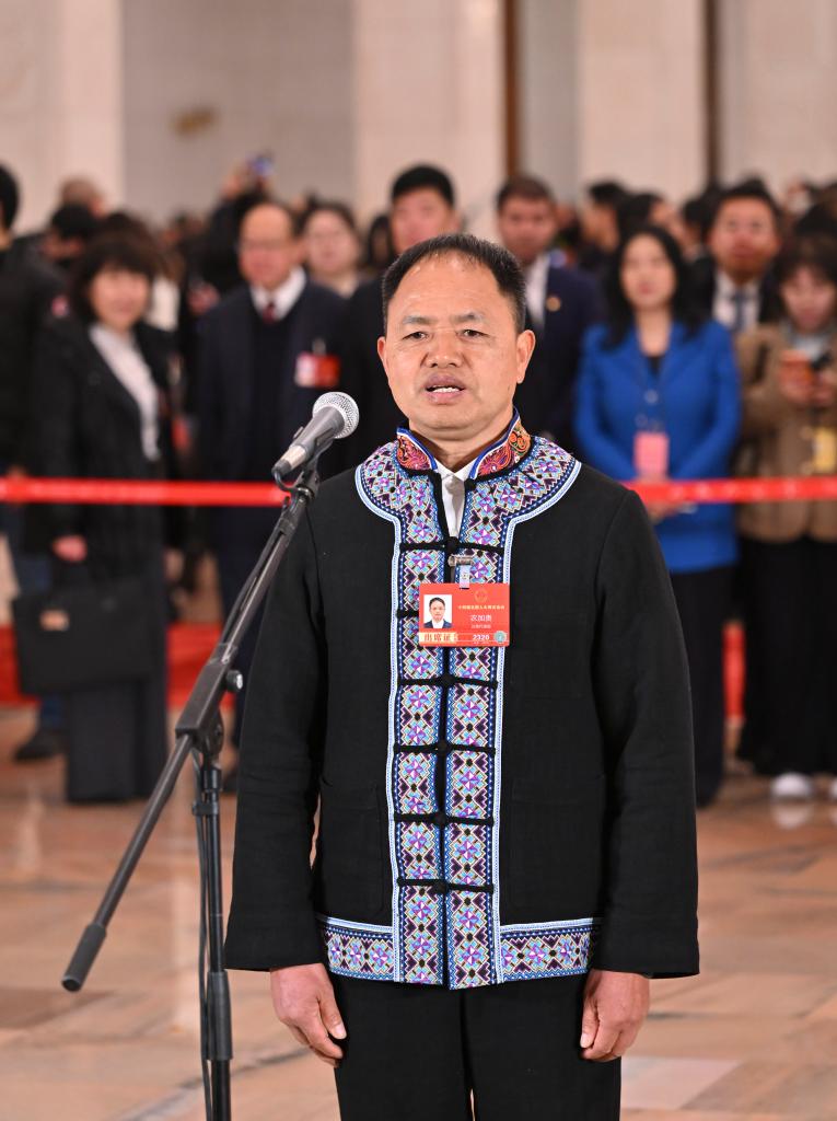 3月5日,第十四屆全國人民代表大會(huì)第四次會(huì)議首場(chǎng)“代表通道”集中采訪活動(dòng)在北京人民大會(huì)堂舉行。這是全國人大代表農(nóng)加貴接受媒體采訪。