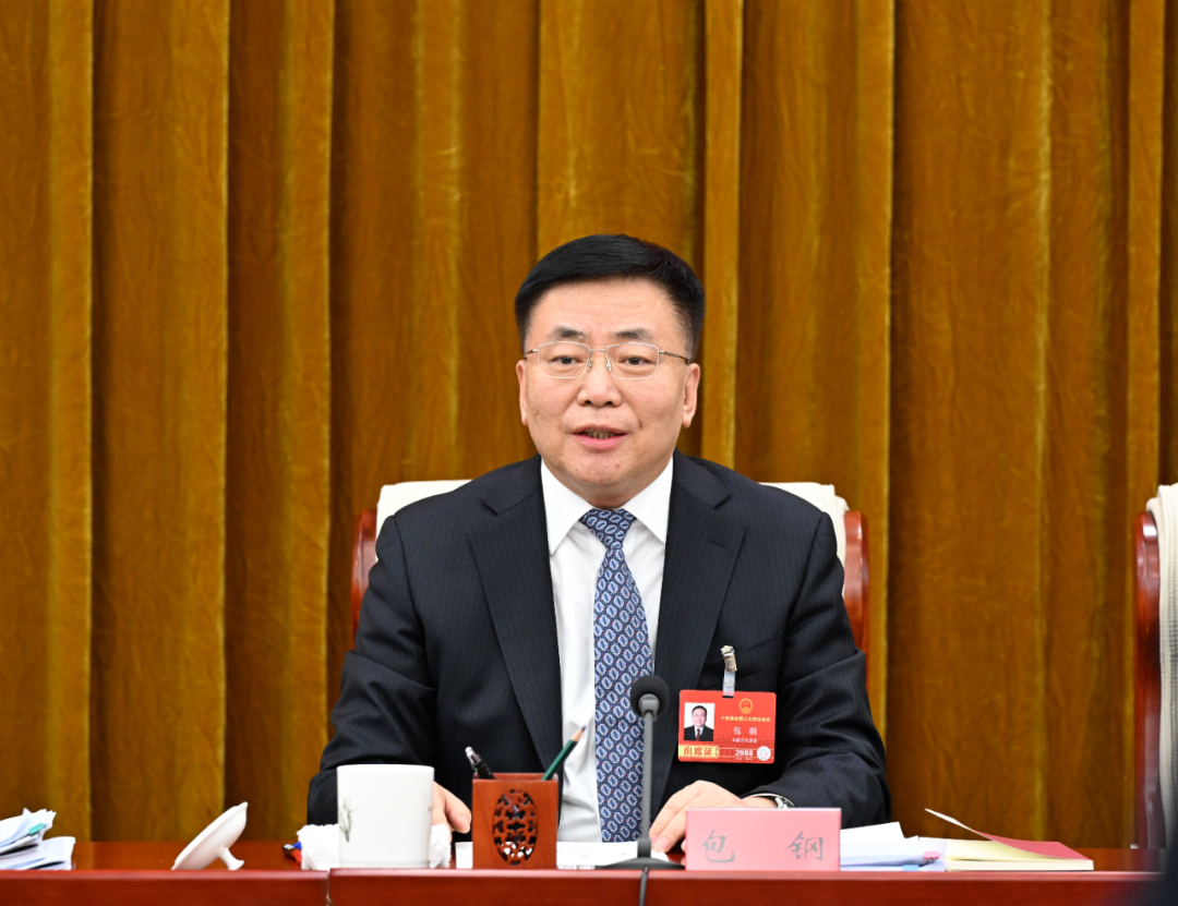 “十四五”時期,在黨中央和習近平總書記的親切關(guān)懷下,內(nèi)蒙古經(jīng)濟社會發(fā)展成效明顯。一是高質(zhì)量發(fā)展穩(wěn)步推進。內(nèi)蒙古經(jīng)濟總量2025年底達到2.67萬億元、居全國第20位,人均GDP排到全國第8位。一般公共預算收入躍升到3000億元以上,人均財力居全國前10位。內(nèi)蒙古20個口岸競相發(fā)展,進出口總值實現(xiàn)翻番達到2206億元。產(chǎn)業(yè)結(jié)構(gòu)持續(xù)優(yōu)化,“十四五”規(guī)上工業(yè)增加值年均增長7%、規(guī)模達到近萬億元,制造業(yè)增加值占規(guī)上工業(yè)的比重提高到41%,戰(zhàn)略性新興產(chǎn)業(yè)、高技術(shù)制造業(yè)年均增長10%以上。稀土化合物、功能材料、煤制烯烴等80多種產(chǎn)品產(chǎn)能全國第1,乳制品、稀土新材料、現(xiàn)代煤化工三個產(chǎn)業(yè)集群入選國家先進制造業(yè)集群。二是服務(wù)國家大局能力不斷增強。內(nèi)蒙古煤炭儲量5400億噸,年均煤炭產(chǎn)量超12億噸,“十四五”累計為29個省份保供煤炭35億噸、居全國首位。電力總裝機達到3.1億千瓦、居全國第1位,其中新能源裝機超過1.7億千瓦、火電裝機近1.4億千瓦,年發(fā)電量8700億度,電力外送量連續(xù)21年居全國首位。稀土新材料基地和稀土應(yīng)用基地初具規(guī)模,冶煉能力和工藝水平國際領(lǐng)先。累計建成高標準農(nóng)田6281萬畝,2025年糧食產(chǎn)量840億斤、升至全國第5位,牛奶產(chǎn)量760萬噸、牛肉產(chǎn)量102萬噸、羊肉產(chǎn)量101萬噸、飼草產(chǎn)量7000萬噸,均穩(wěn)居全國首位。內(nèi)蒙古是全國八大算力網(wǎng)絡(luò)樞紐節(jié)點之一,擁有充足的新能源,電價低廉、氣候涼爽、地質(zhì)穩(wěn)定,距離京津冀時延短,算力規(guī)模達到23.7萬P,其中智算22萬P、綠電消費比例82%以上,均居全國前列。三是生態(tài)安全屏障進一步夯實。全力打好“三北”工程三大標志性戰(zhàn)役,科爾沁沙地正重現(xiàn)草原風光,庫布其沙漠構(gòu)筑起“四道防線”,黃河兩岸林草帶全線貫通,有效阻止巴丹吉林、騰格里沙漠“握手”,累計完成生態(tài)建設(shè)1.23億畝、防沙治沙6688萬畝,均居全國首位。深入打好藍天、碧水、凈土保衛(wèi)戰(zhàn),呼倫湖面積保持在2230平方公里、烏梁素海面積保持在290平方公里、岱海面積保持在50平方公里以上,“一湖兩?!奔安旌鼓谞栔卫碛伞爸魏础毕颉爸瘟饔颉鞭D(zhuǎn)變。全區(qū)優(yōu)良天數(shù)比例保持在90%以上,黃河干流內(nèi)蒙古段水質(zhì)連續(xù)6年保持Ⅱ類,受污染耕地安全利用率保持在98%以上。單位GDP能耗累計下降18%、超額完成國家下達目標,鋼鐵、有色、化工等重點行業(yè)46種產(chǎn)品能耗達到國家先進值。四是民生福祉不斷增進。居民人均可支配收入突破4萬元、居全國第9位。學前教育毛入園率、九年義務(wù)教育鞏固率、高中階段毛入學率均高于全國水平。城鄉(xiāng)低保標準提高到每月815元和615元、較“十三五”末分別提高16.4%、32.3%。五是民族團結(jié)局面持續(xù)鞏固。內(nèi)蒙古是我國最早成立民族自治區(qū)的地方,我們把鑄牢中華民族共同體意識作為民族地區(qū)各項工作的主線,成功創(chuàng)建65個全國民族團結(jié)進步示范典型,全面推廣普及國家通用語言文字,全面推行使用國家統(tǒng)編教材,各民族交往交流交融更加緊密,中華民族共同體意識更加深入人心。